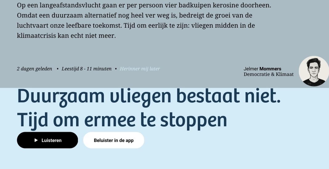 Jammer dat De Correspondent nu ook heeft besloten dat alles is toegestaan om luchtvaart af te schilderen als de Grote Boze Wolf in klimaatland. Een citaat uit de inleiding: