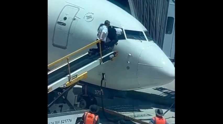 SCHIPHOL - Op sociale media zijn opmerkelijke beelden verschenen van een Delta-piloot die met hulp van zijn collega via een bagageband en een raam de cockpit van een Boeing 737 binnenklimt. De eerste poging mislukt, maar de tweede poging is wél succesvol.