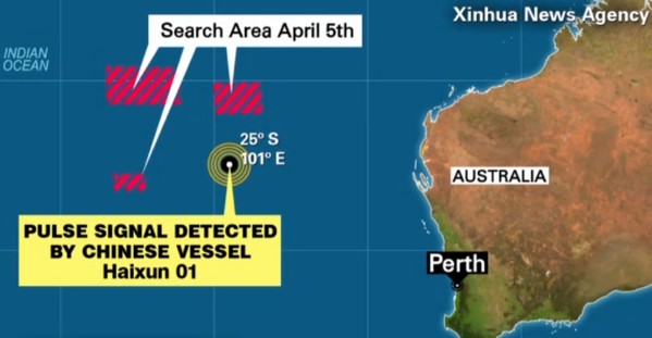 PERTH - Een Chinees schip, dat in de Indische Oceaan meedoet aan de zoektocht naar de vermiste Boeing 777 van Malaysia Airlines, heeft gedurende een minuut een signaal opgevangen op een frequentie die wordt gebruikt voor bakens in vluchtdatarecorders van vliegtuigen. Het schip Haixun 01 ontving een signaal op de frequentie 37,5 kilohertz. Dat meldt het staatsnieuwsbureau Xinhua.